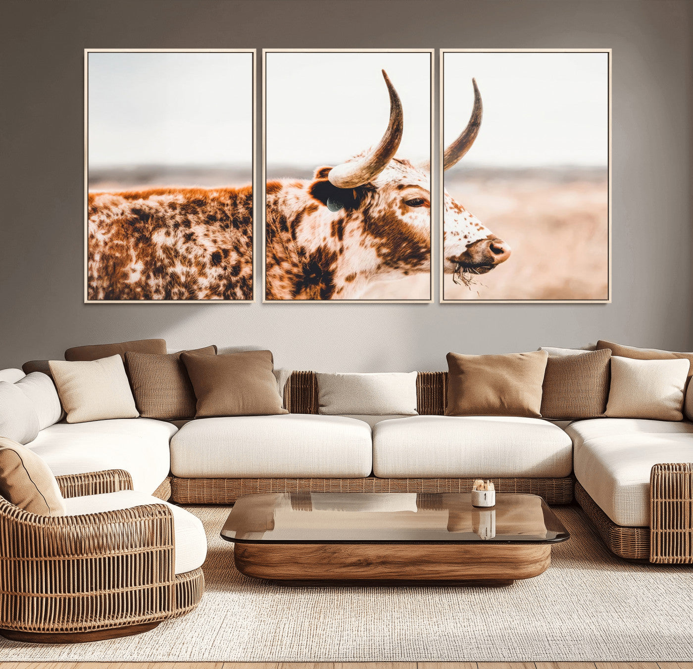 Speckled Bull Wall Art Canvas Print – Rustic Cow Longhorn Farmhouse Animal Decor – Western Longhorn