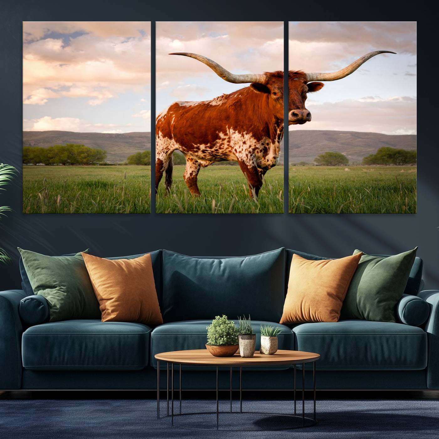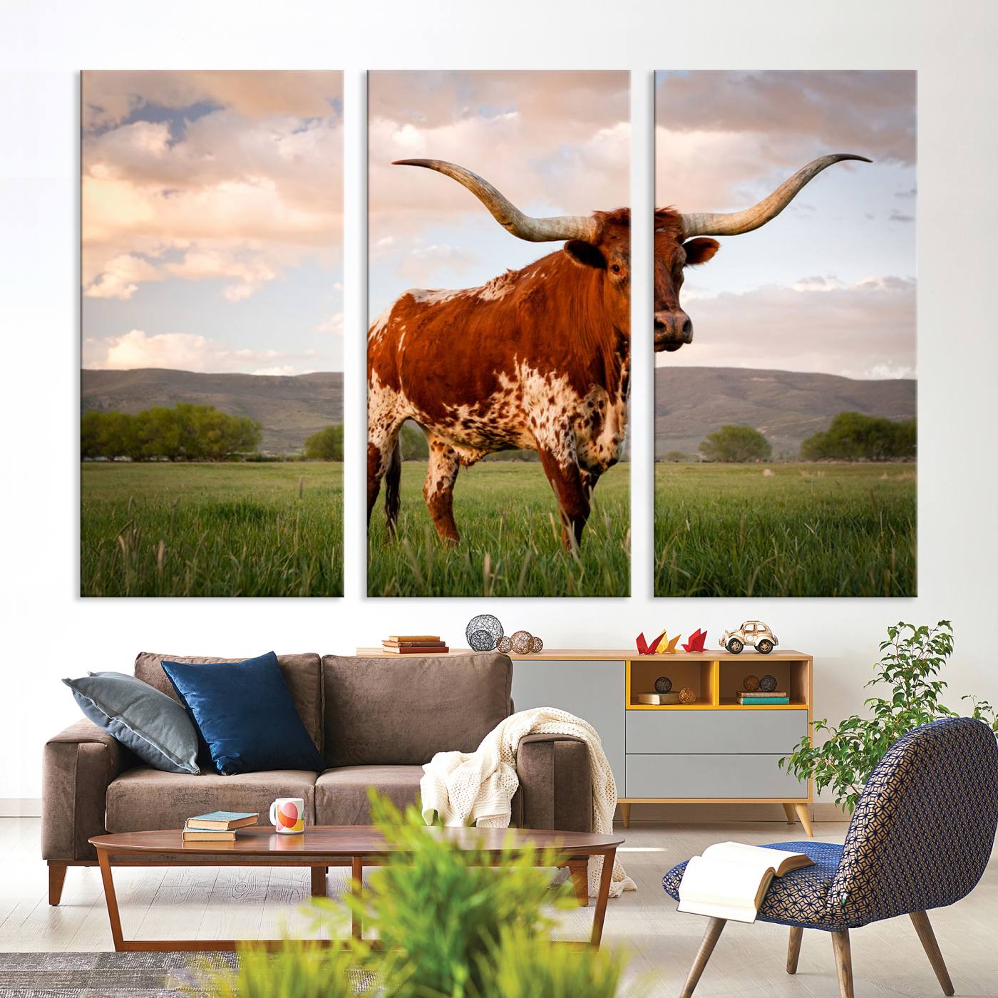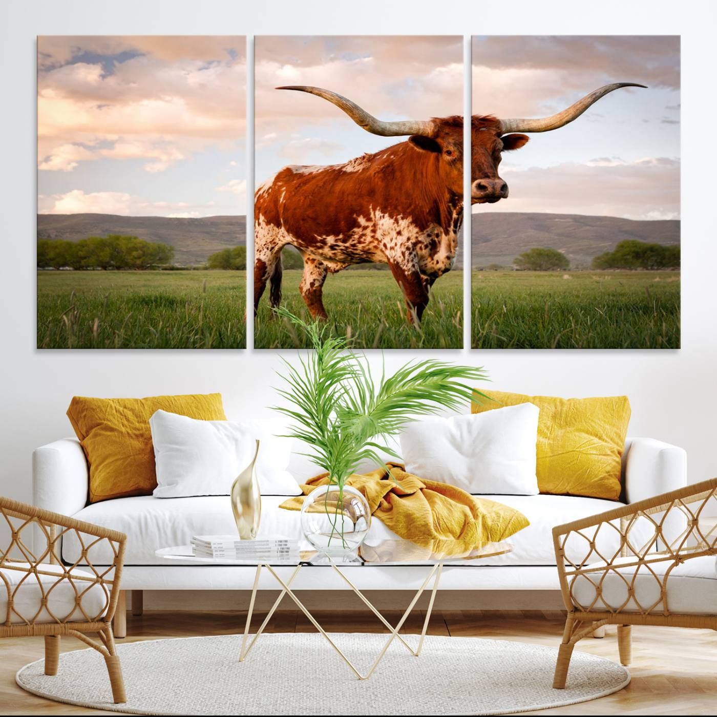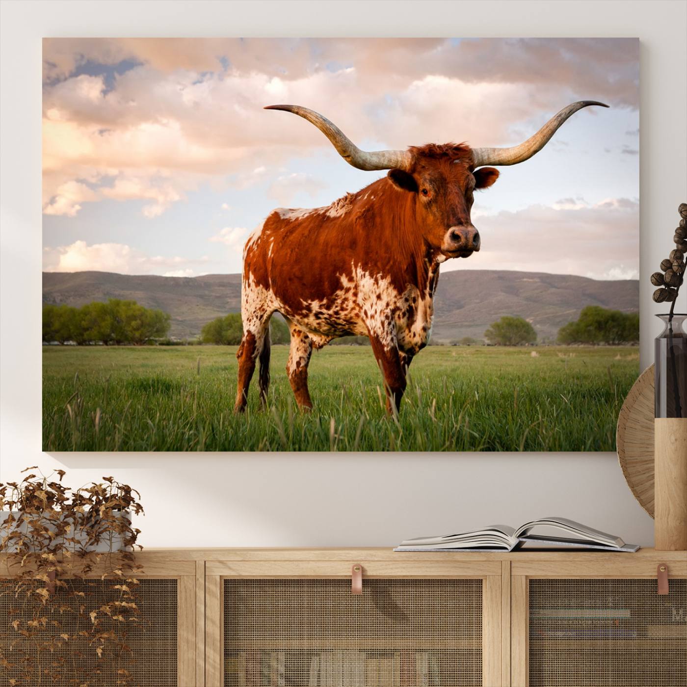 Texas Cow Canvas Wall Art Print, Animal Pictures and Stretched Wall Art