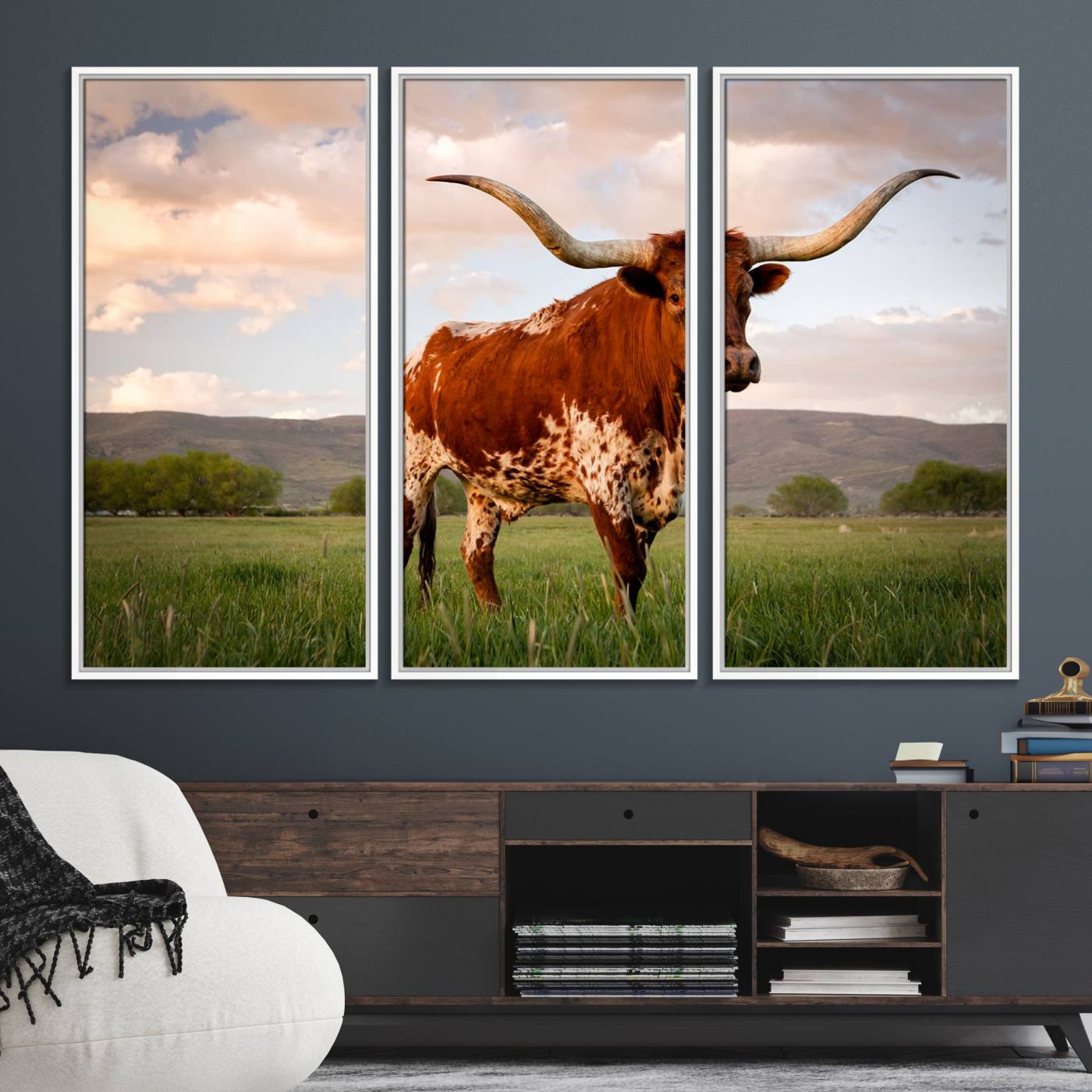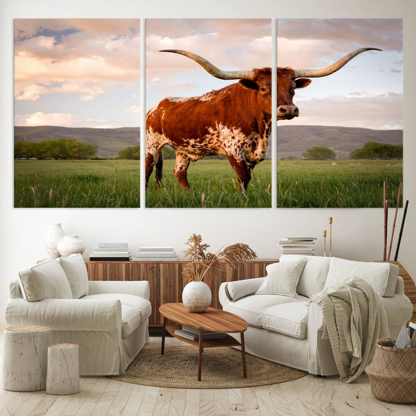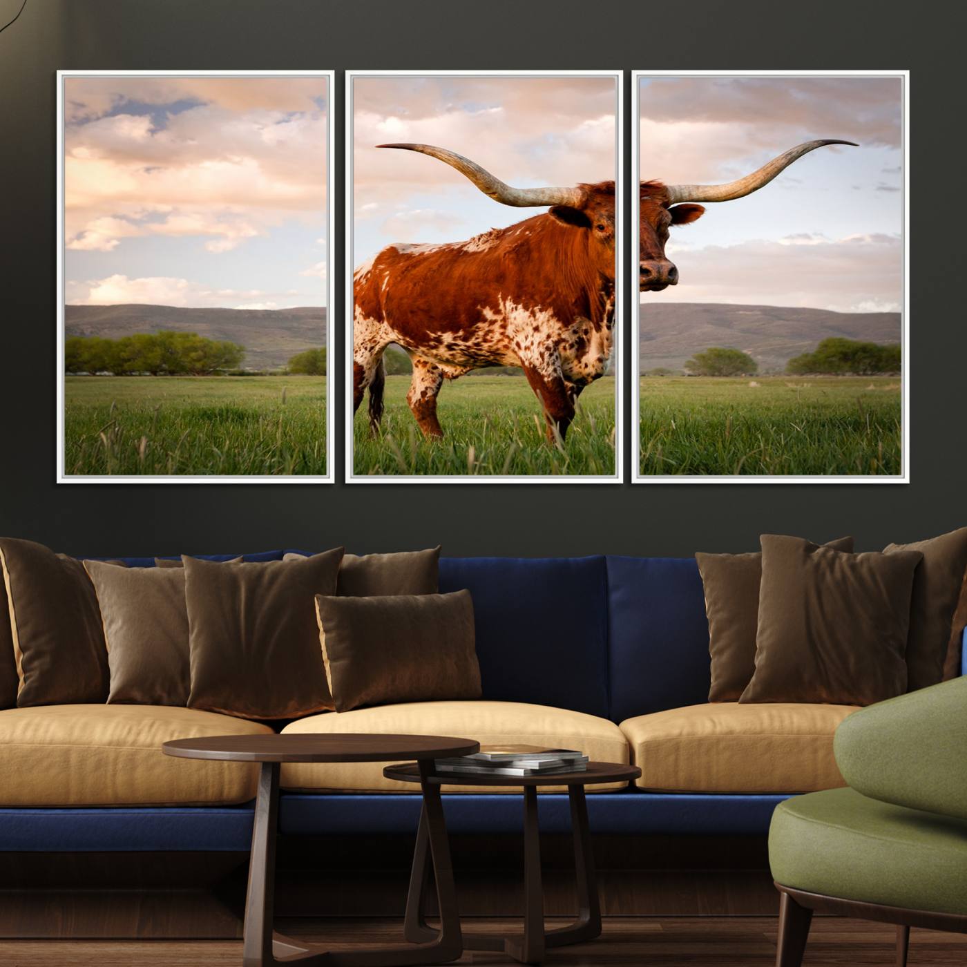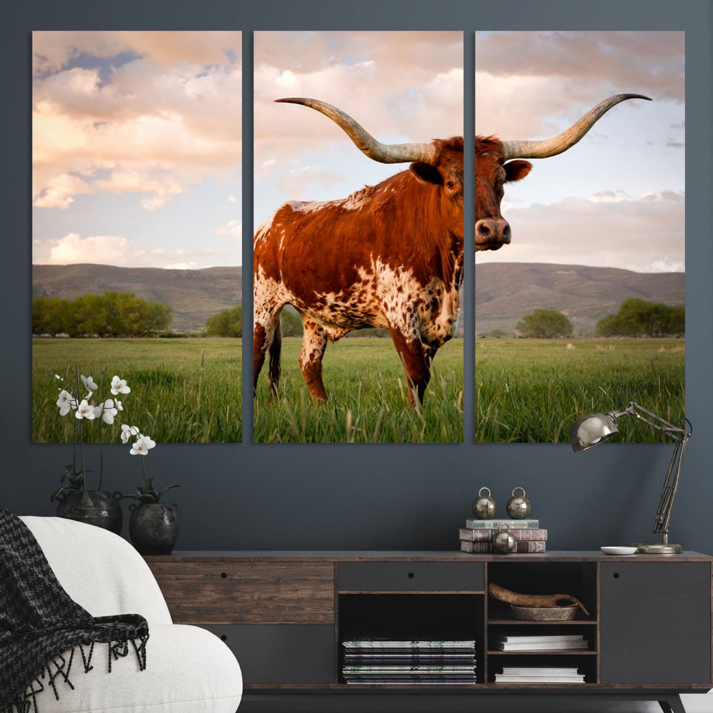 Texas Cow Canvas Wall Art Print, Animal Pictures and Stretched Wall Art