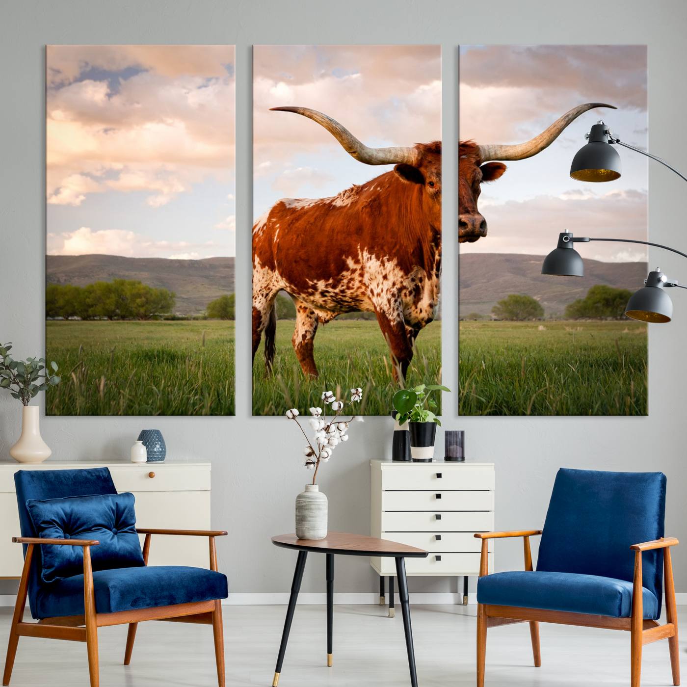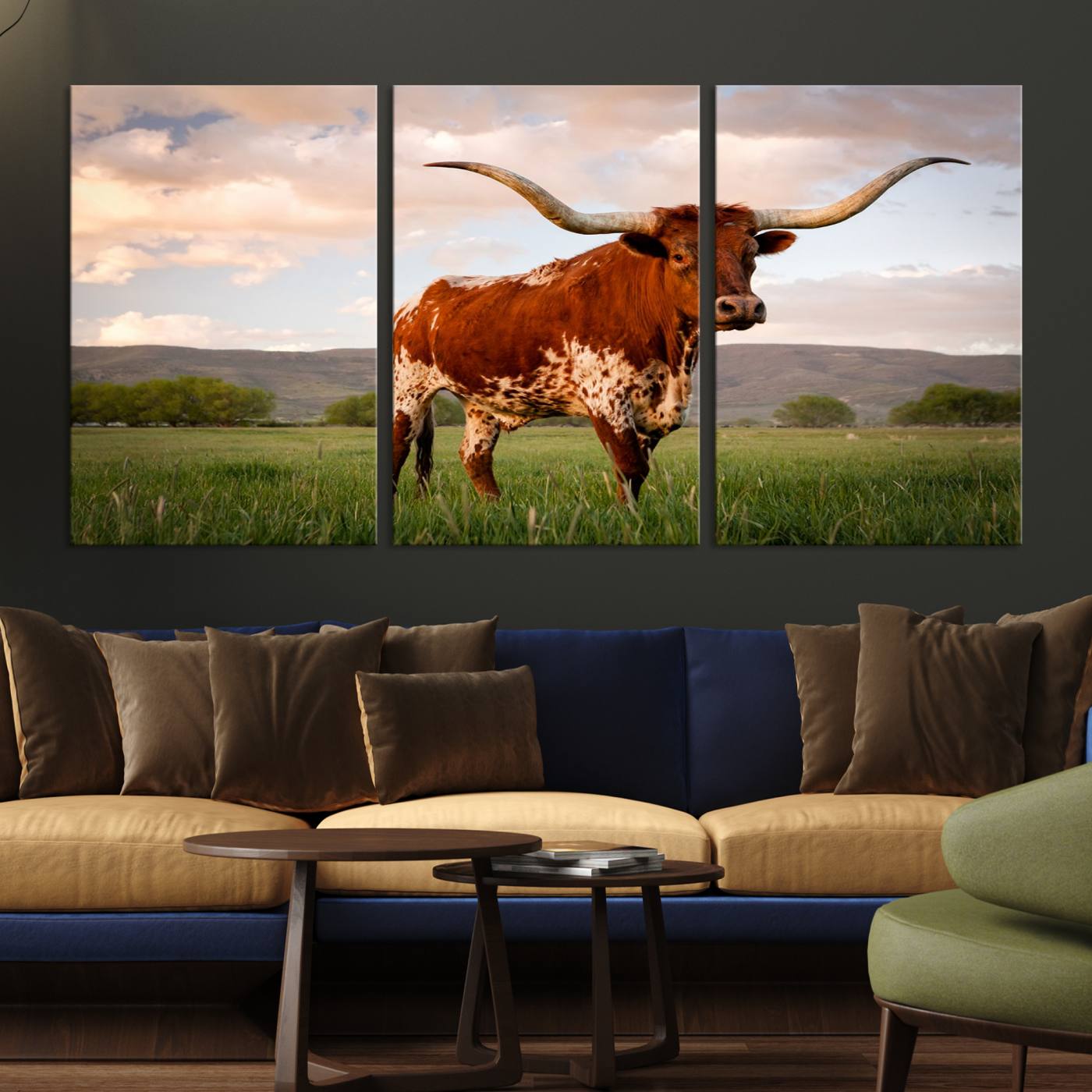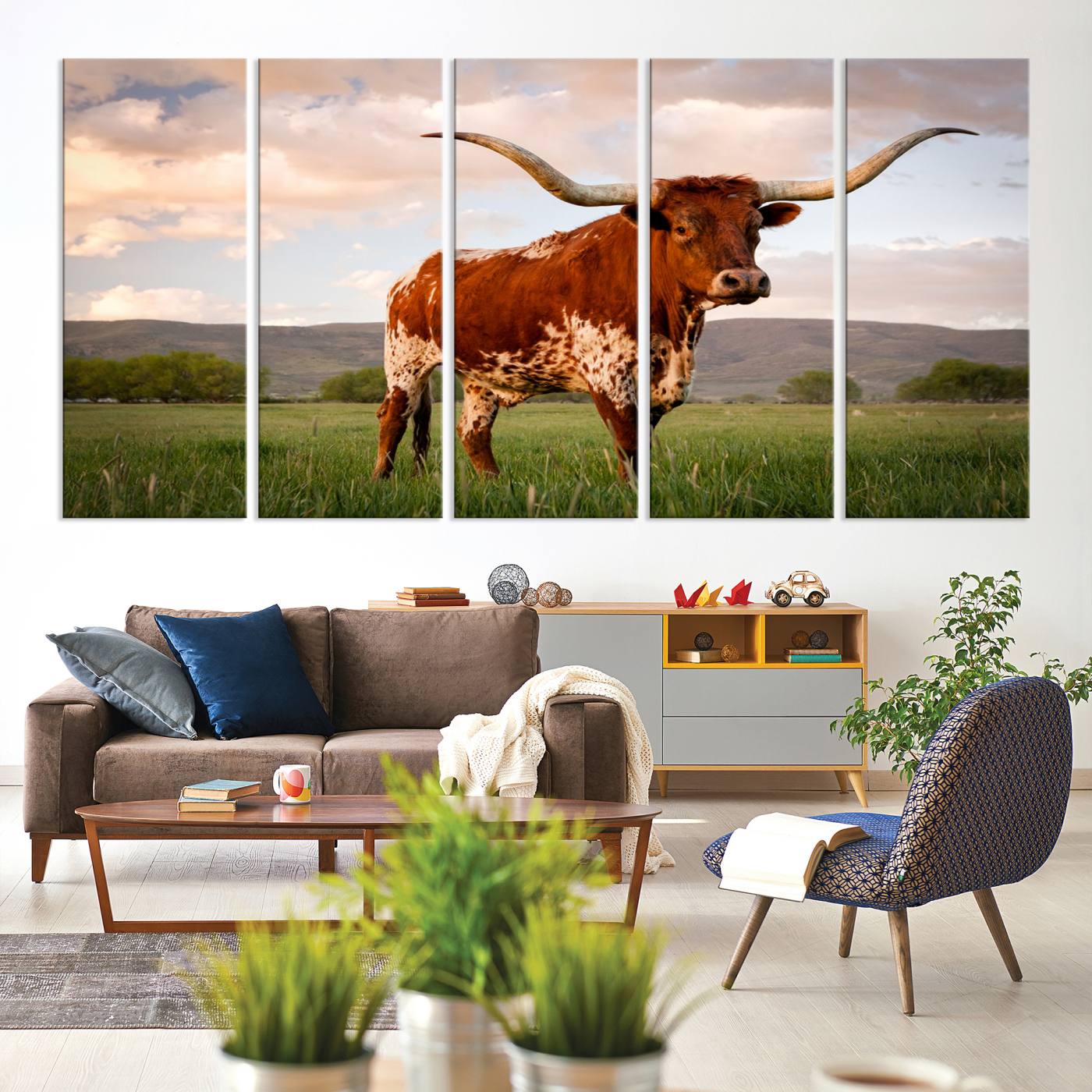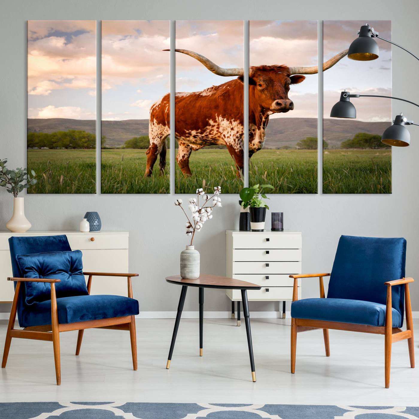 Texas Cow Canvas Wall Art Print, Animal Pictures and Stretched Wall Art