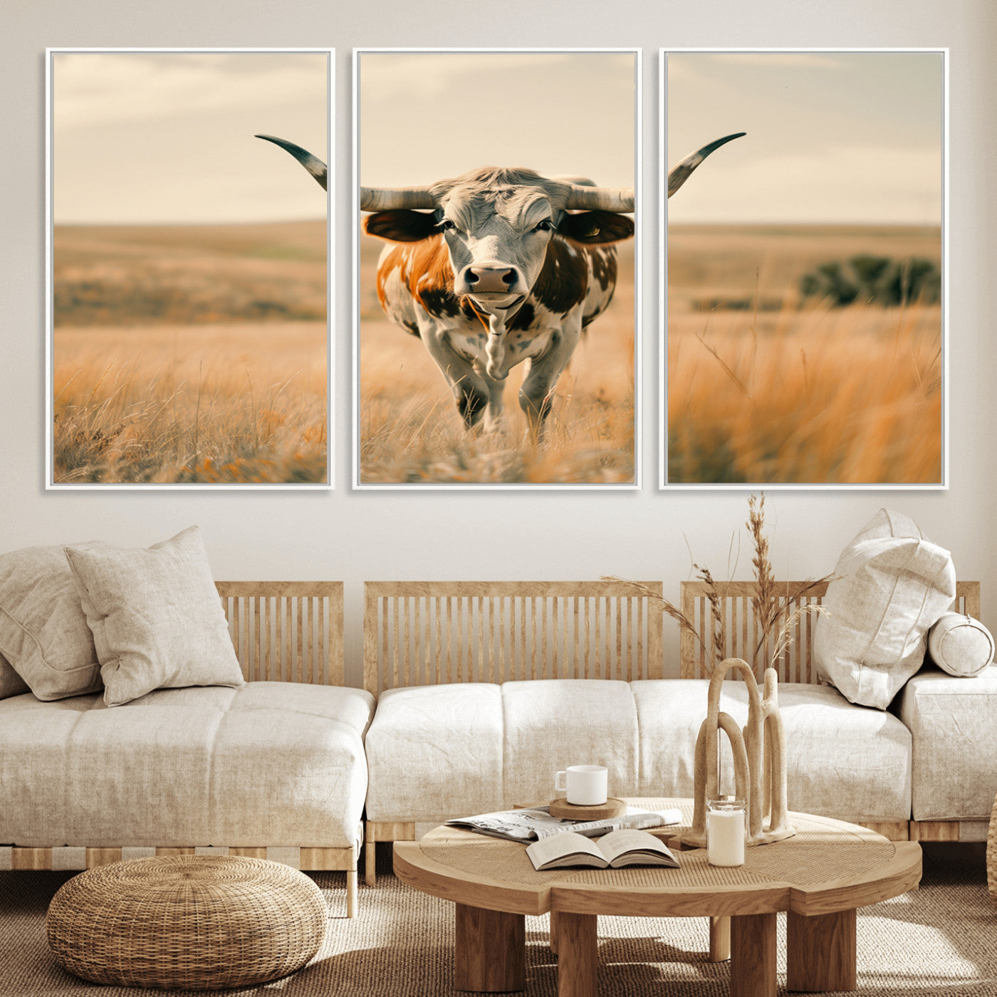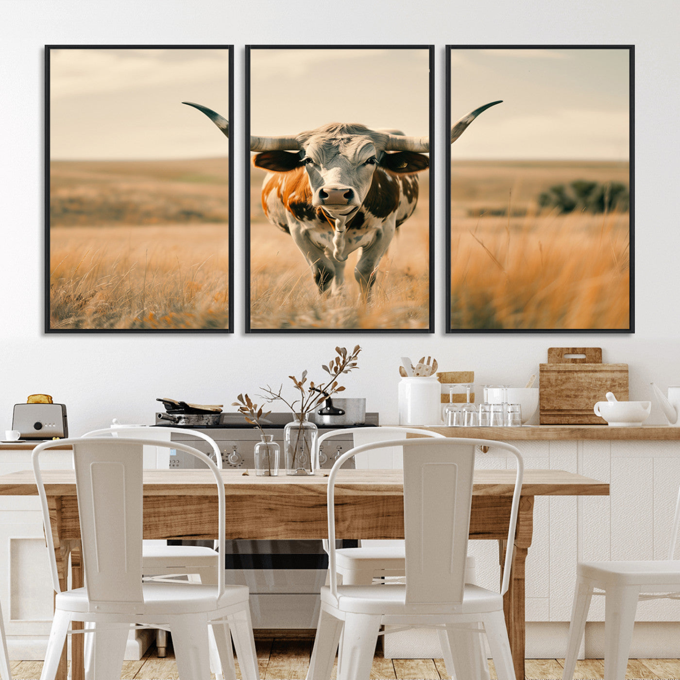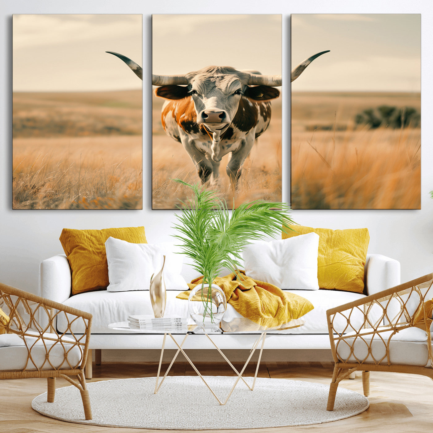 Texas Cow Longhorn Wall Art Canvas Print for Farm House Wall Decor, Farmhouse Cow Print Canvas Wall