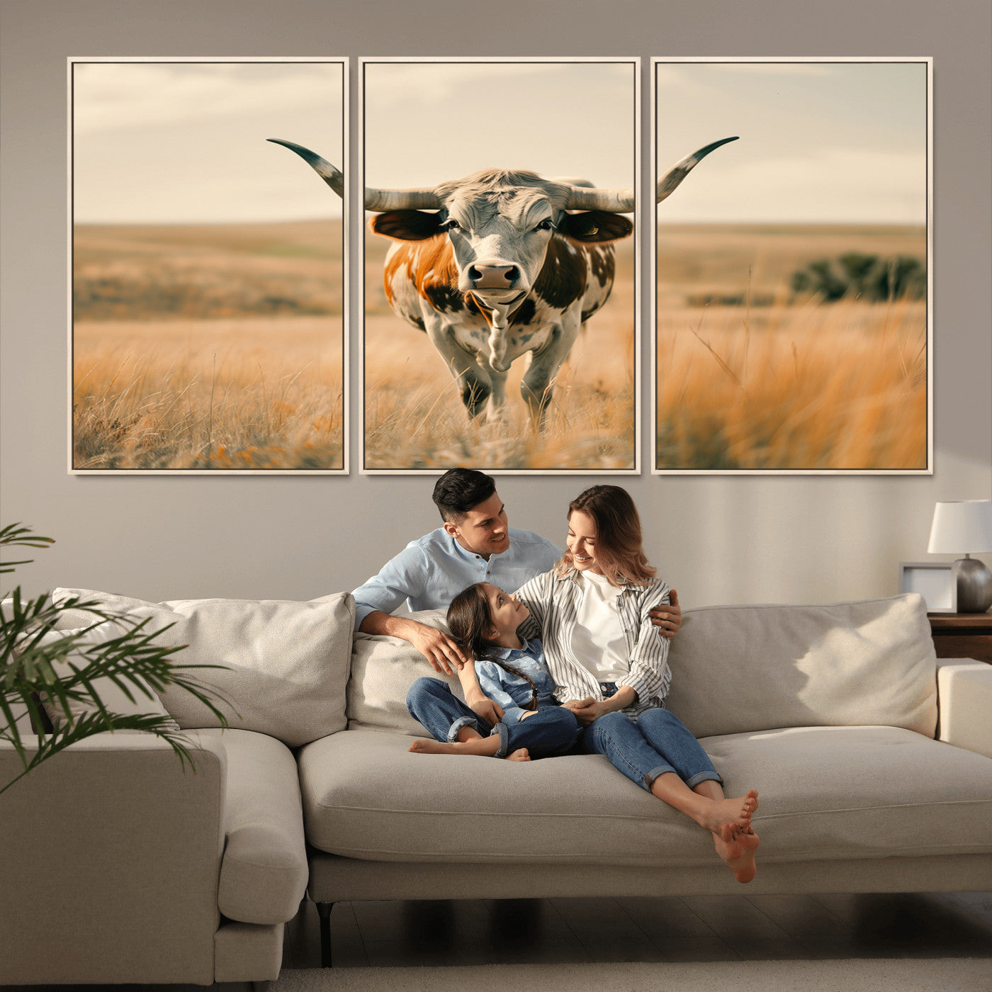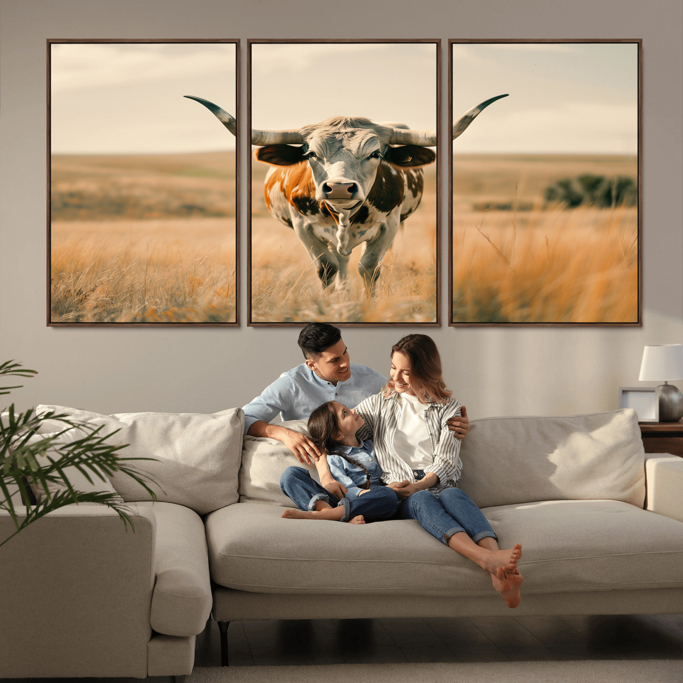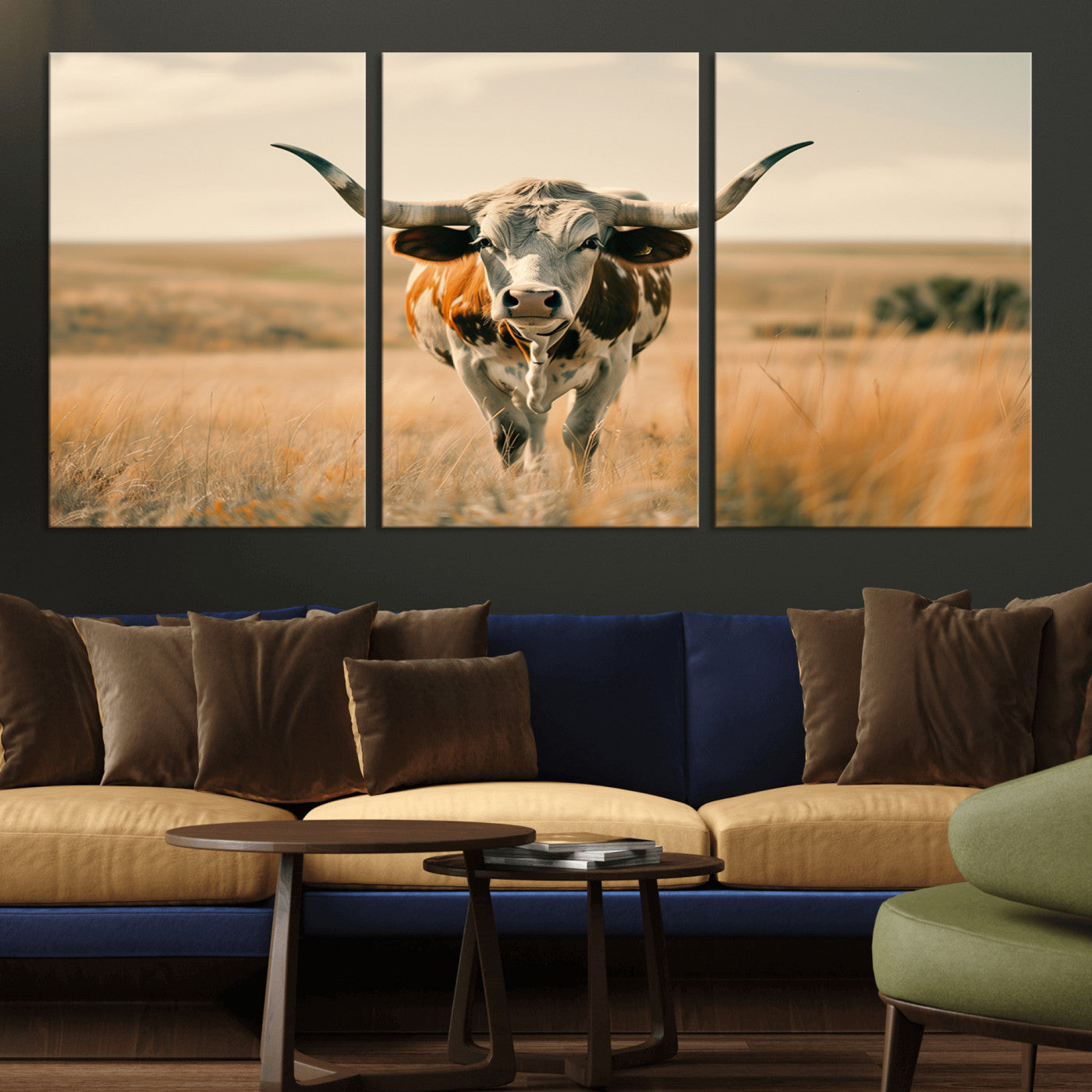 Texas Cow Longhorn Wall Art Canvas Print for Farm House Wall Decor, Farmhouse Cow Print Canvas Wall