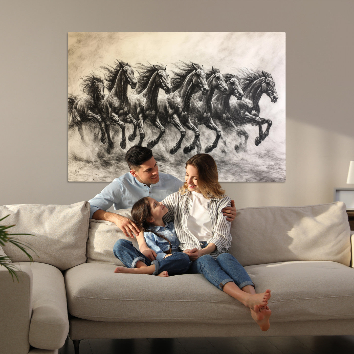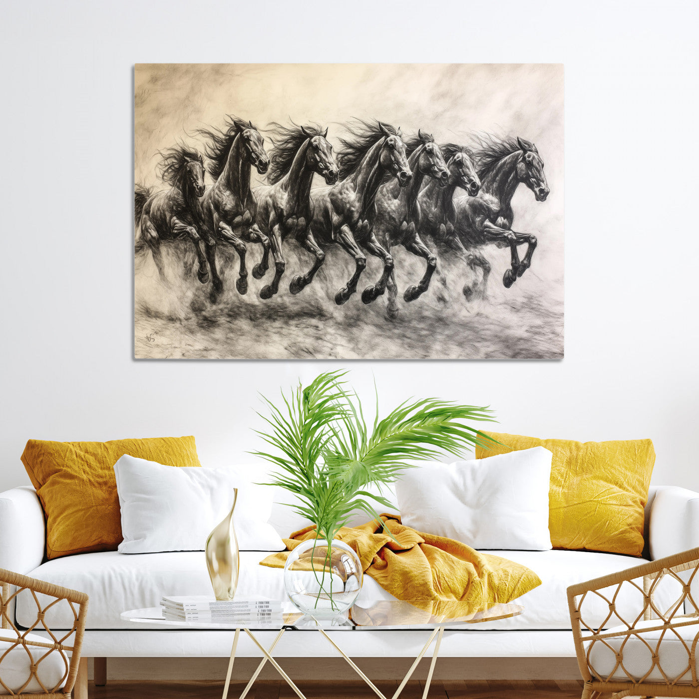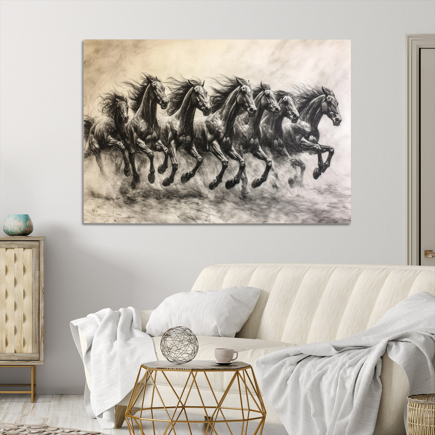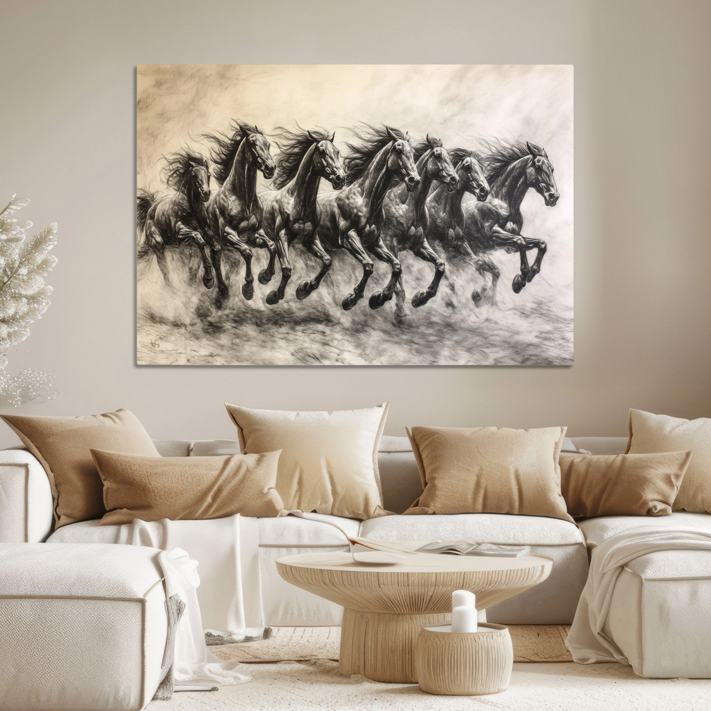 Galloping Horses Wall Art Canvas Print – Framed Wild Stallions Herd Sketch Dynamic Equestrian Artwork for Home Office