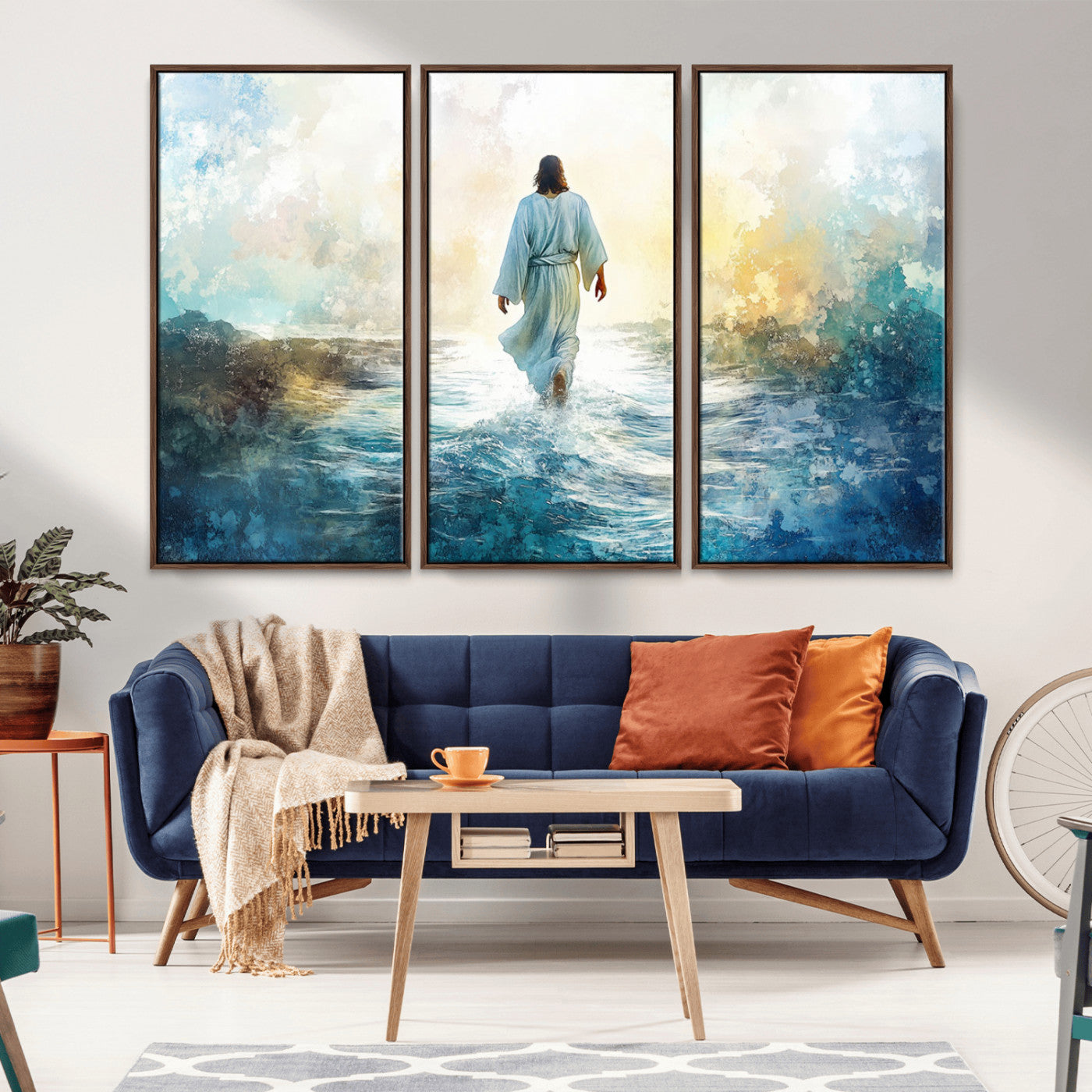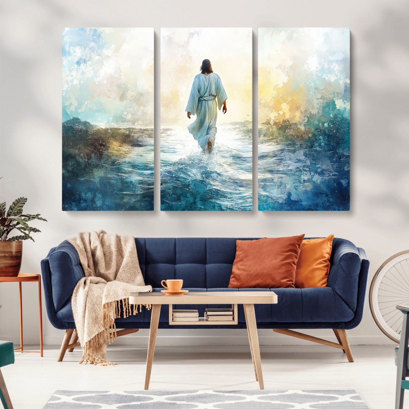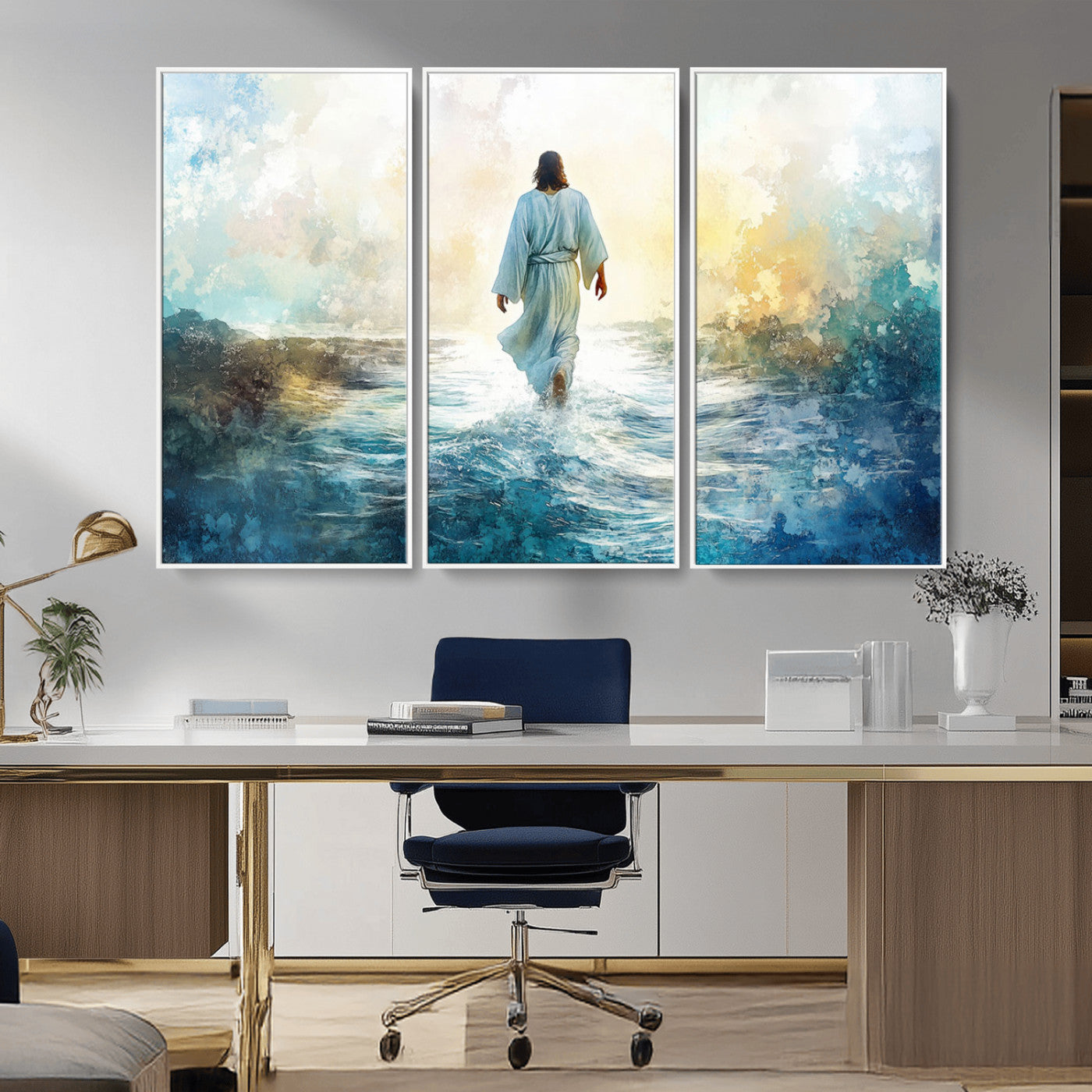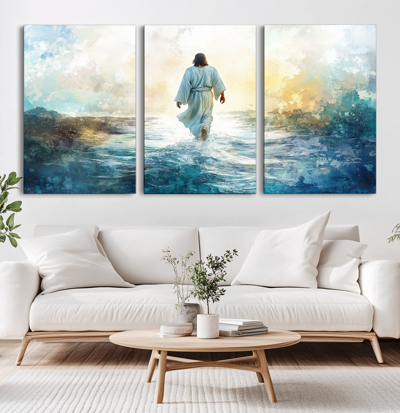 Watercolor Jesus Walking on Water Canvas Print, Christian Wall Art, Jesus Christ Walking