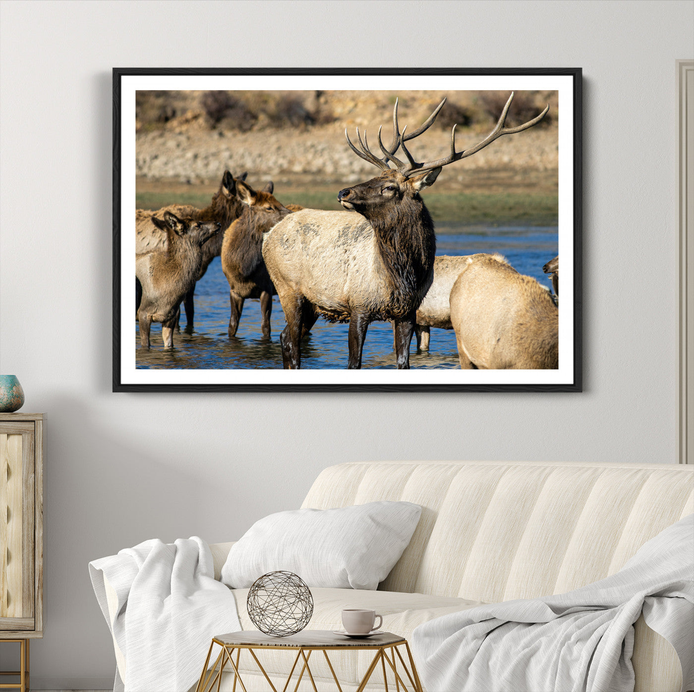 Wild Elk Wall Art Canvas Print – Framed Neutral Wildlife Rustic Forest Scene Photography Artwork for Home Office